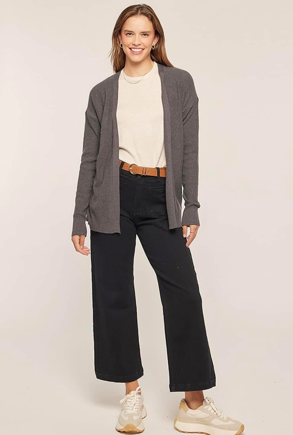 CHARCOAL WAFFLE TEXTURED SOFT TOUCH SWEATER CARDIGAN