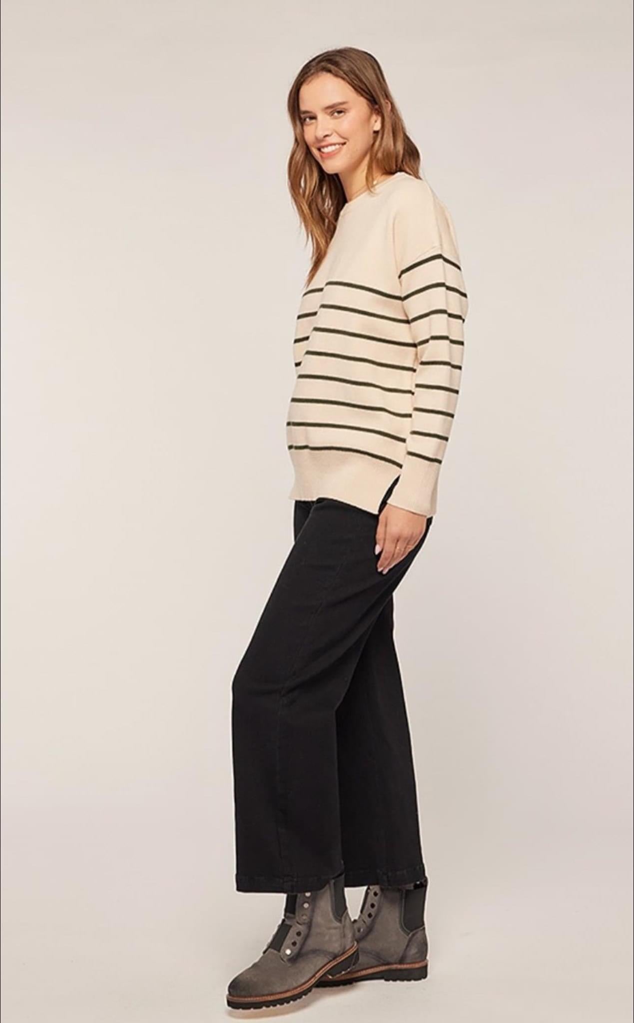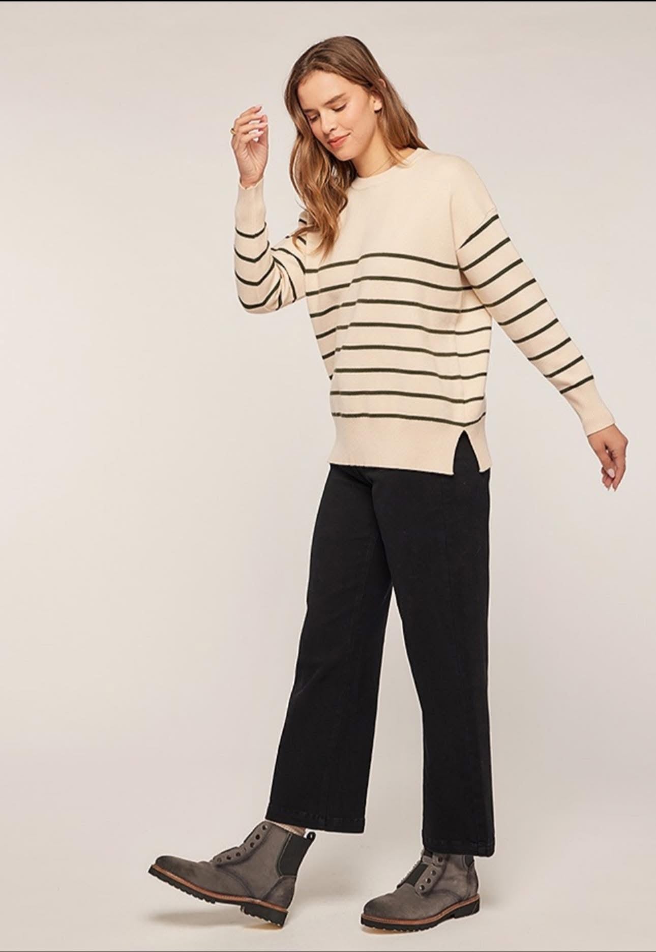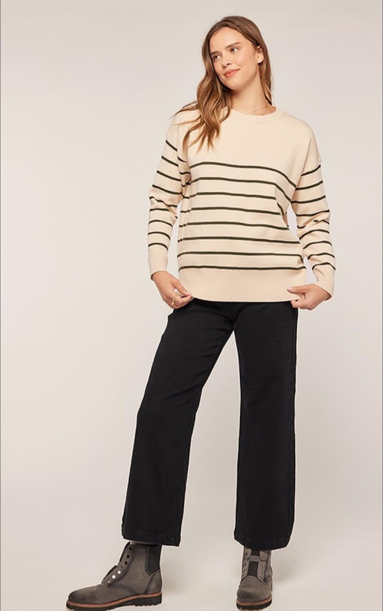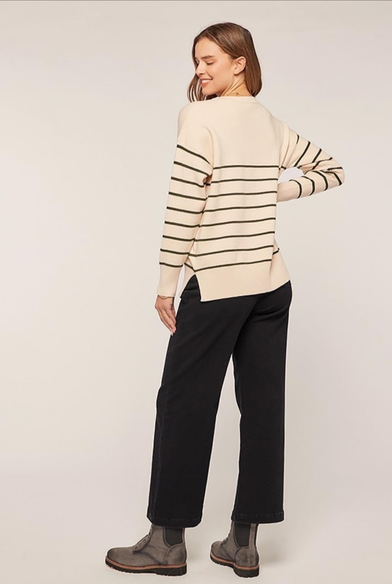 OATMEAL/DARK GREEN STRIPE SWEATER