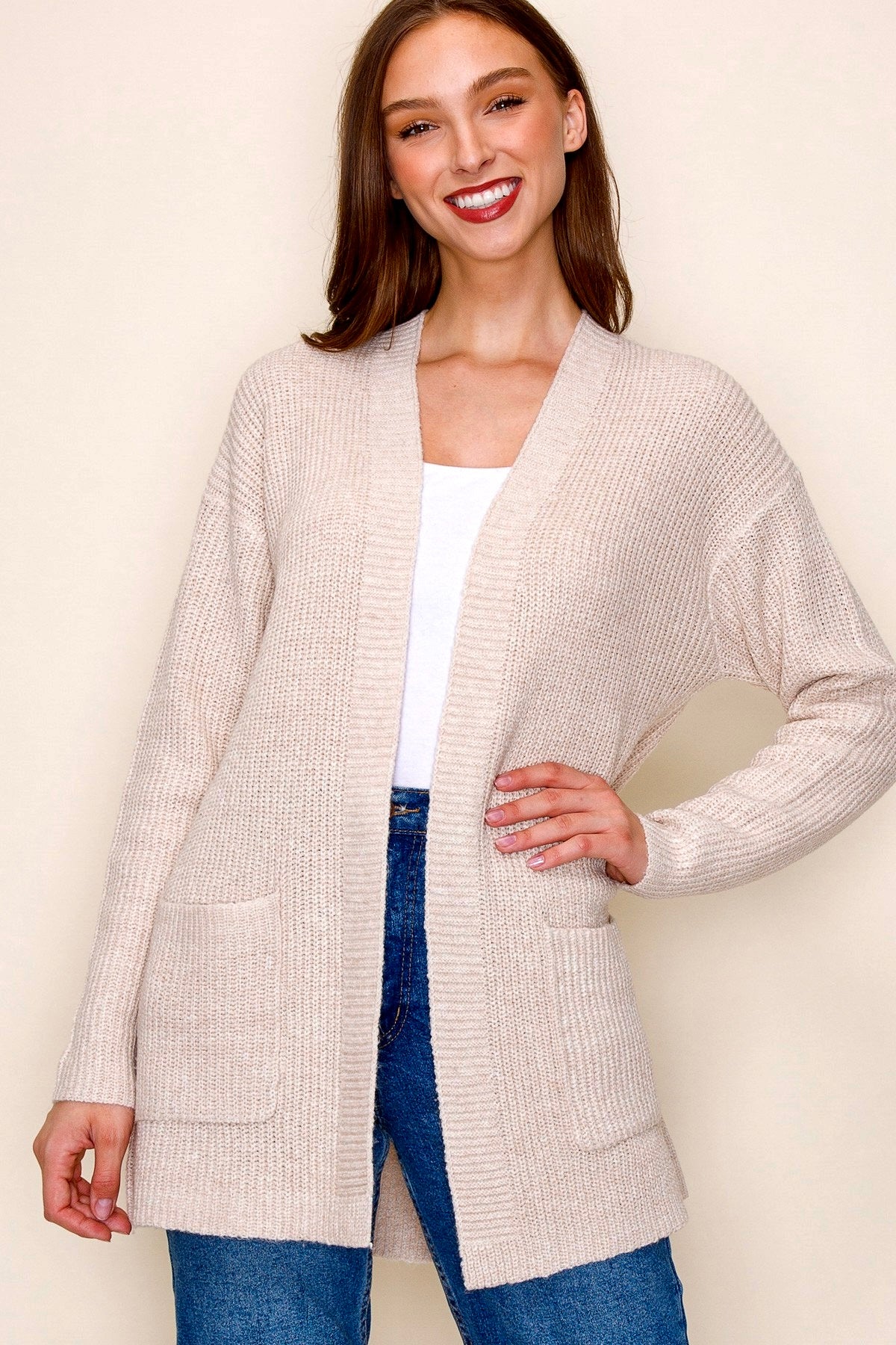 OATMEAL OPEN FRONT POCKET SWEATER CARDIGAN