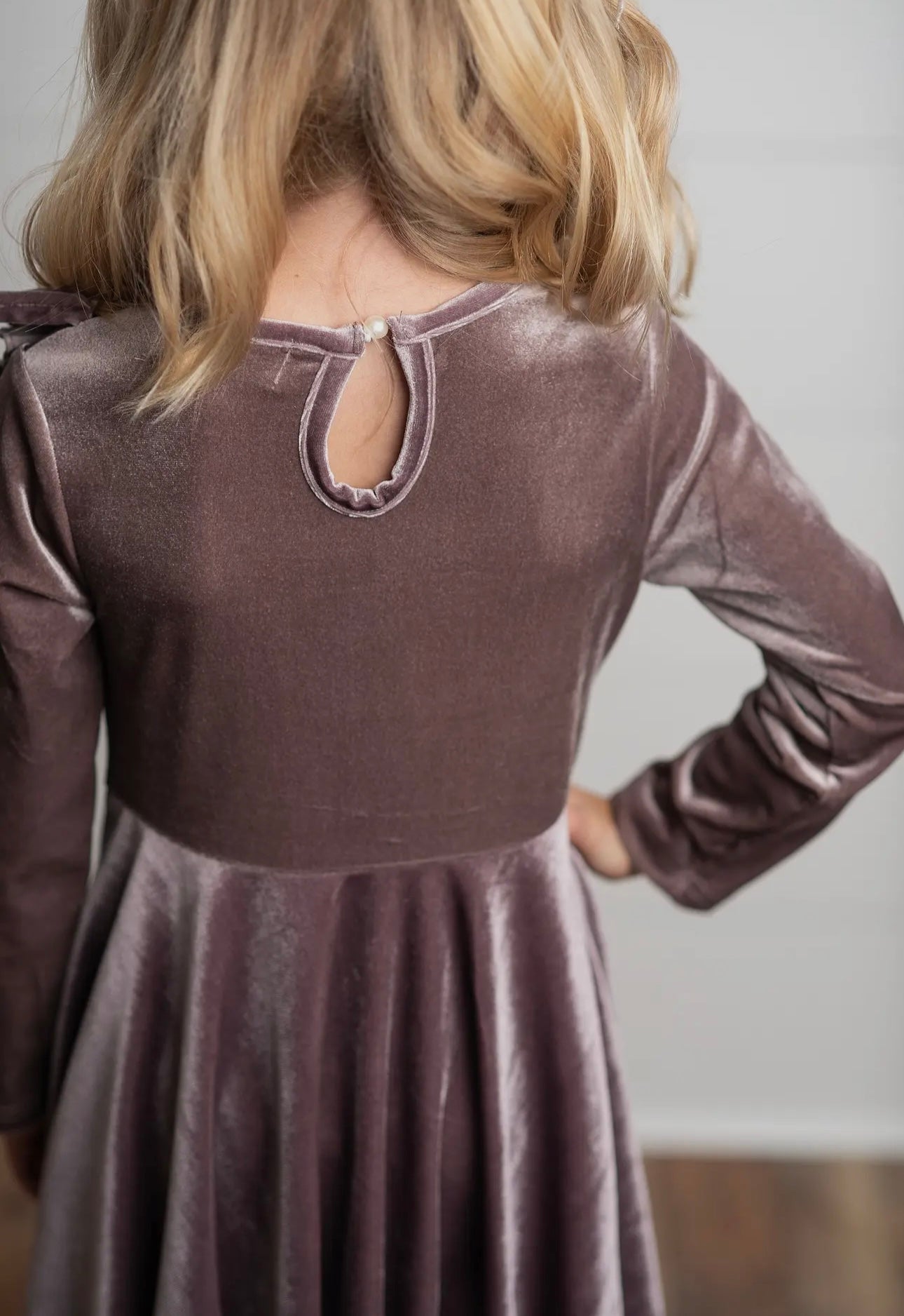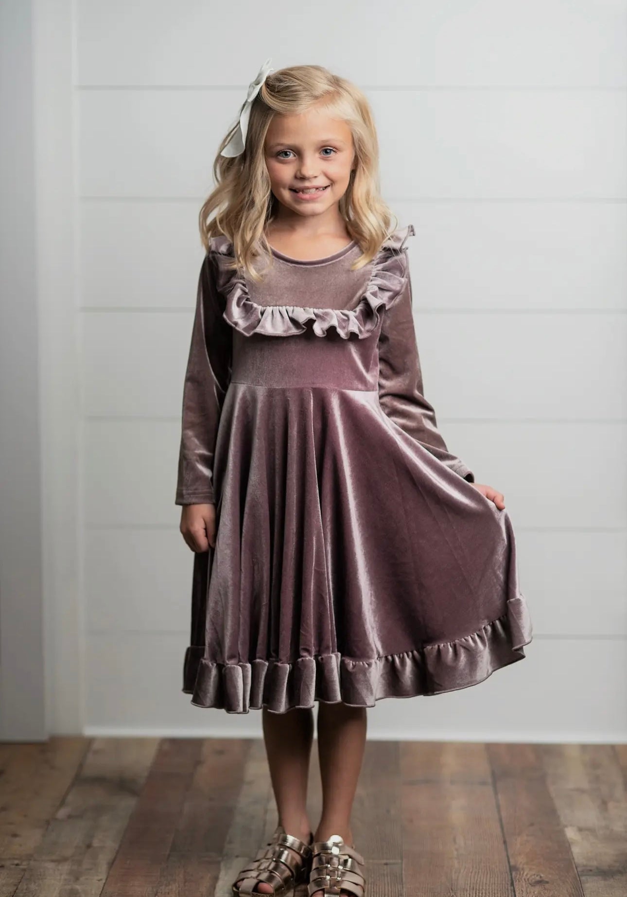 KIDS LAVENDER VELVET RUFFLE DRESS