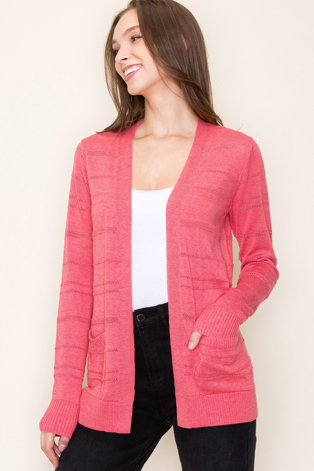 ROSE POINTELLE STRIPED OPEN FRONT CARDIGAN